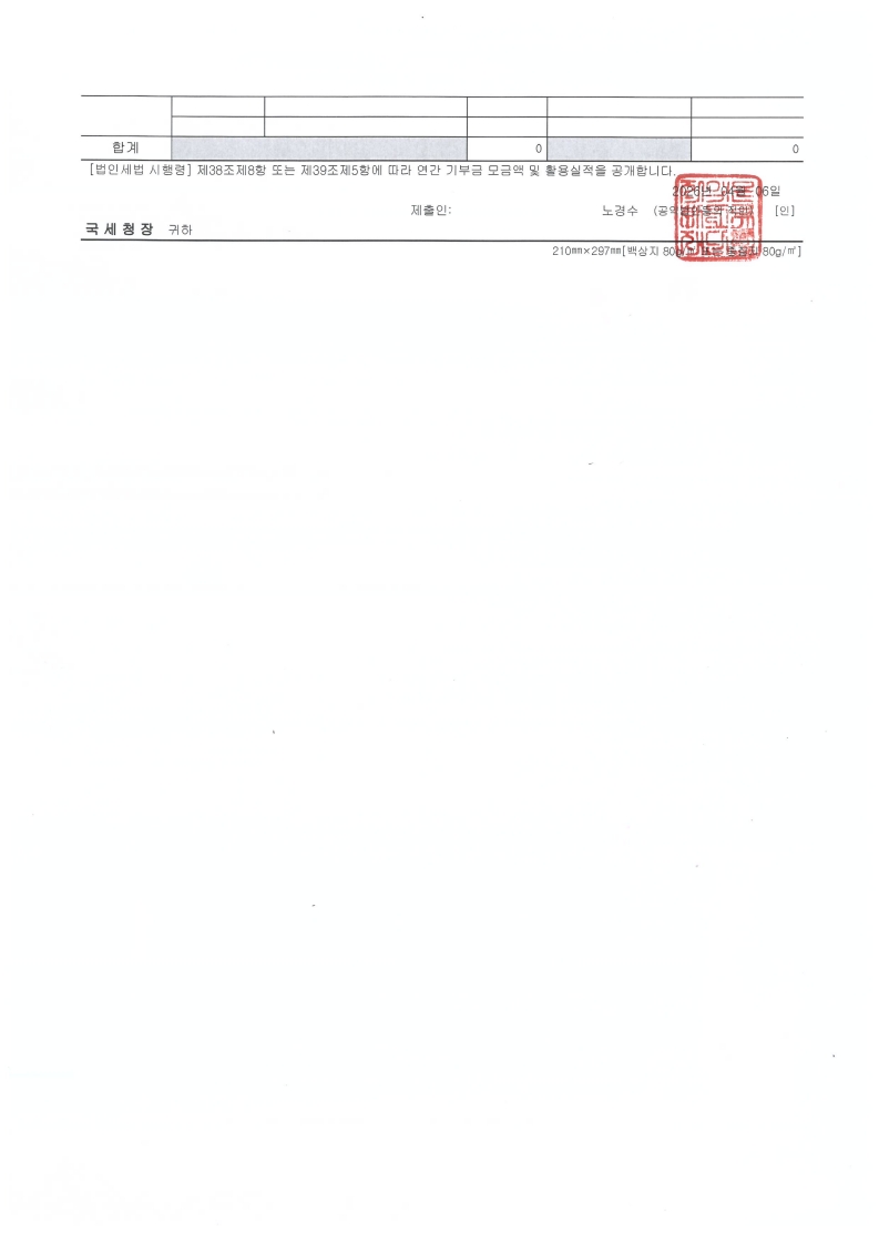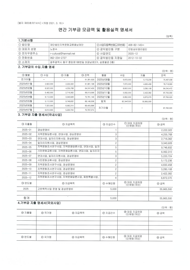 2025년도 연간 기부금 모금액 및 활용실적 명세서