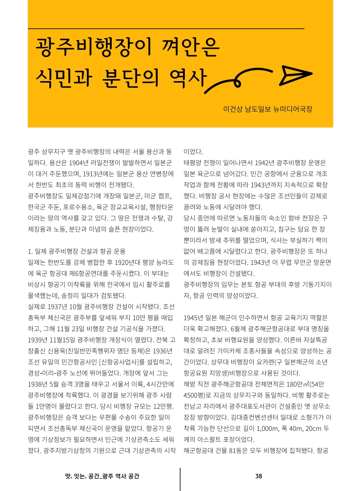 | 맛 있는 공간_ 광주 역사 공간 | 광주비행장이 껴안은 식민과 분단의 역사 |